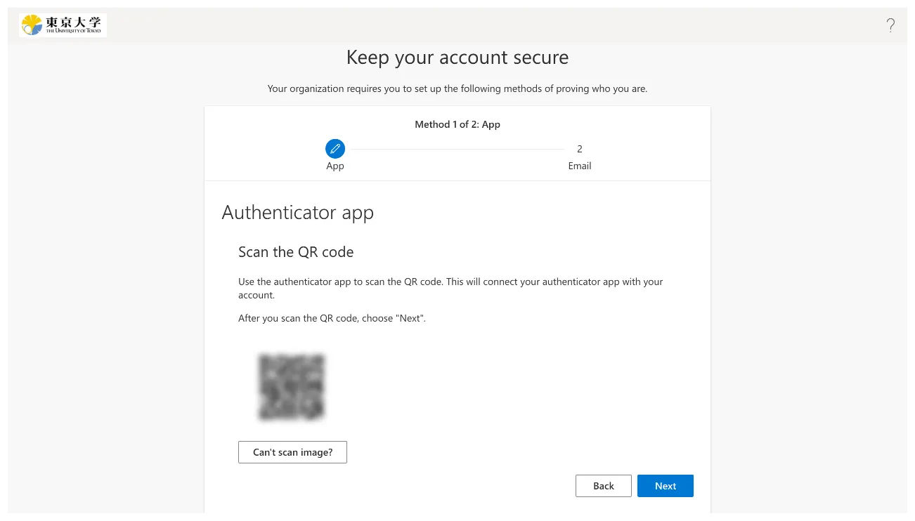 You need to display the QR code to register the Yubico Authenticator application as a verification method for the multi-factor authentication of UTokyo Accounts. Since the method for displaying the QR code differs depending on the situations, details are explained separately.