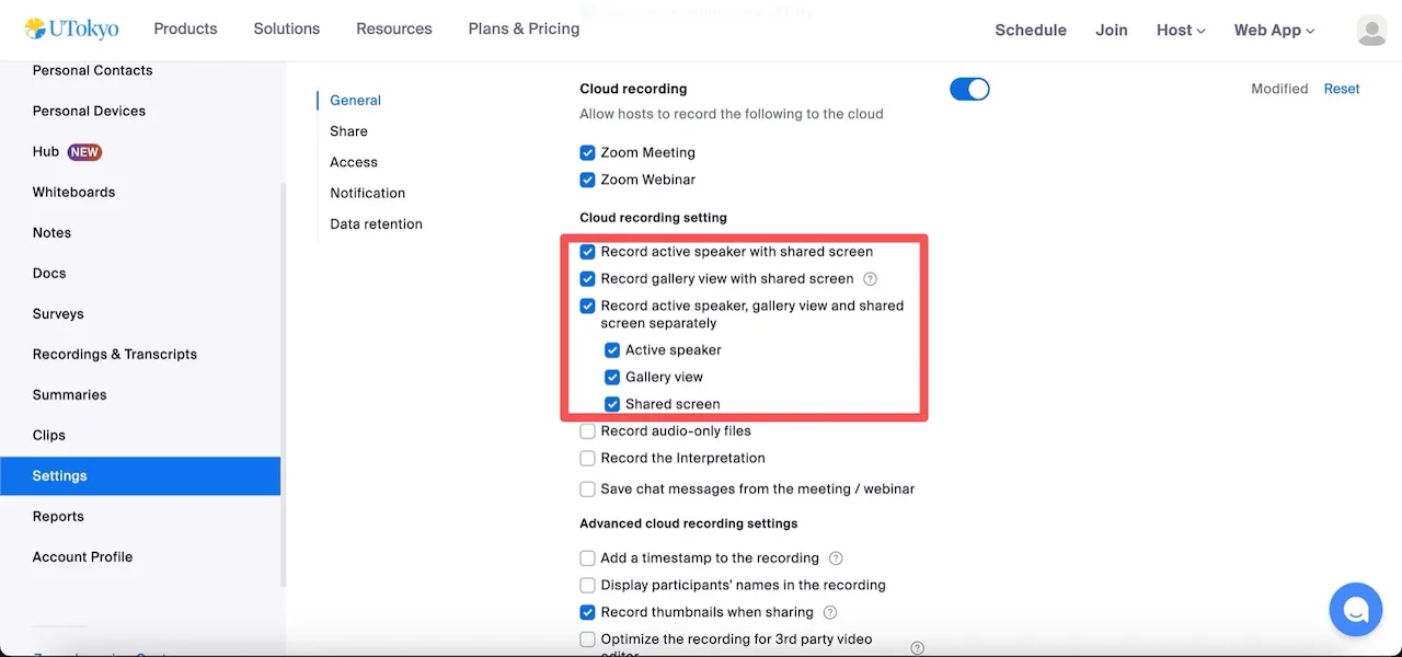 Layout settings applied during a meeting, such as pinning or spotlighting participants, are reflected in the recording layout. For detailed configuration steps, please refer to “Zoom Meeting Layout (in Japanese)”.